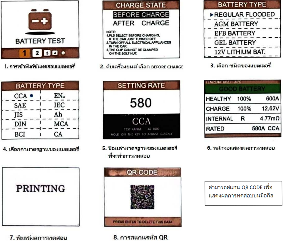 • เหมาะสำหรับใช้ทดสอบกับแบตเตอรี่ตะกั่ว-กรด 12V ทุกรุ่น AGM, GEL, SPIRAL, SLI