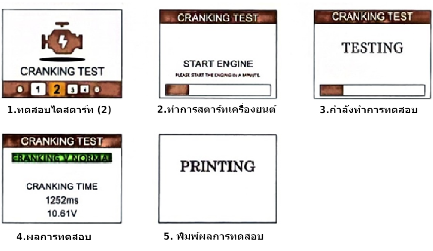 (2) ต่อจากนั้นหากต้องการทดสอบระบบสตาร์ทและไดชาร์จ สามารถเลือกทดสอบต่อไปได้ตามลำดับ