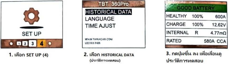 เรียกดูประวัติการทดสอบและกด “ENTER” คุณสามารถดูข้อมูลกลุ่มบันทึกล่าสุด 20 กลุ่มได้ด้วยปุ่ม “ขึ้น” หรือ “ลง”